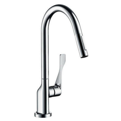Páková stojančeková drezová batéria s vyťahovacou sprškou. V farebnom prevedení vzhľad nerezu. Prietok batérie je 9,5 litrov / minútu. Výška batérie je 42,7 cm. Ramienko je vo výške 24,6 cm.