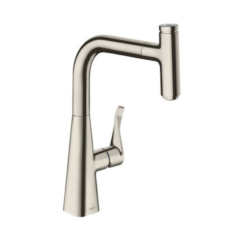 Páková stojančeková drezová batéria s vyťahovacou sprškou. V farebnom prevedení vzhľad nerezu. Prietok batéria je 10 litrov / minútu. Výška batérie je 35 cm. Ramienko je vo výške 23,8 cm.