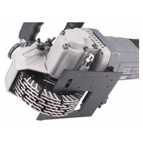 Ďalšou výhodou je otočná rukoväť, ktorá umožňuje jednoduchšie manévrovanie so zariadením a umožňuje prispôsobiť polohu rukoväte pracovným podmienkam. Nástenná fréza je vybavená aj systémom rozprašovania vody na čepele s čerpadlom a hadicou, ktorá ich pri rezaní jemne ochladzuje a výrazne znižuje tvorbu prachu počas prevádzky. Toto zariadenie účinne chráni nielen pred úrazom elektrickým prúdom, ale minimalizuje aj riziko požiaru spôsobeného výpadkom prúdu. Pomocou lasera veďte zariadenie dokonale pozdĺž línie rezu. Umožňuje vám nastaviť hĺbku rezu aj šírku brázdy. Kotúče je možné jednoducho meniť naklonením štítu pomocou motýlových svoriek. Odstránením gumenej zátky v tomto modeli zariadenia môžeme pripevniť odprašovací systém pomocou vhodného adaptéra. Pevné puzdro prístroja zaisťuje bezpečnosť a ergonómiu práce. Pomocou gombíka môžete rýchlo uvoľniť skrutku uvoľňujúcu rukoväť a potom ju nastaviť do vhodnej polohy - pohodlnej pre prácu.