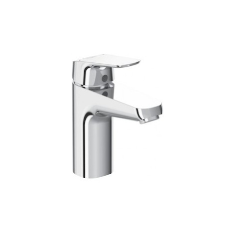Páková stojančeková umývadlová batéria s výpusťou. V oblom dizajne. V chrómovom prevedení. Prietok batérie je 5 litrov / minútu. Výška batérie je 16 cm. Ramienko je vo výške 9,4 cm.